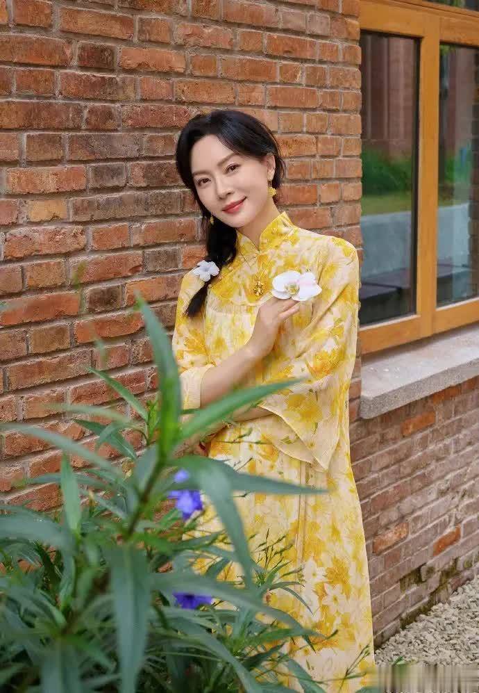 此外,陈数将黑发编成低麻花辫,点缀一朵白色小花,和裙身印花相互呼应,减龄又不刻意。金色耳饰与项链作为点睛之笔,散发着金属光泽,和鹅黄色印花连衣裙的适配度拉满,让整体造型在温柔中多了几分贵气。